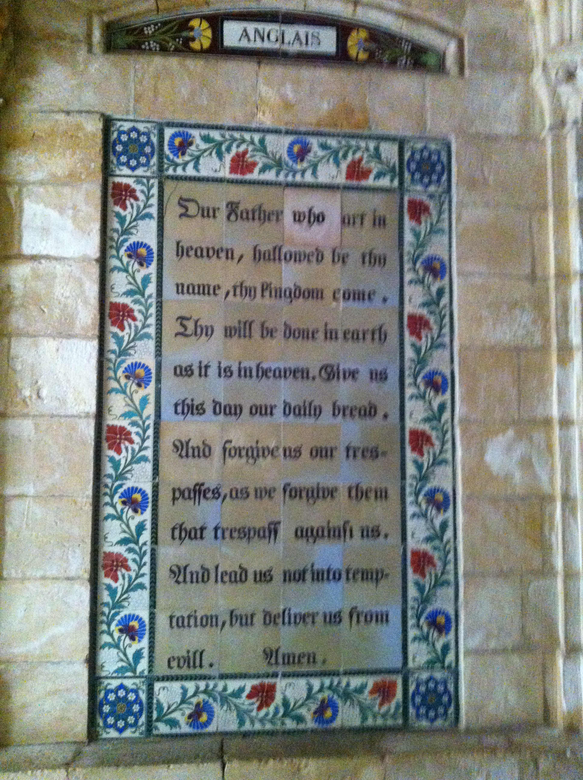 We began pilgrimage this morning at the Paternoster church. The fragrance of roses, the hibiscus blooms, gardens all around provide a setting for the tiled illuminations of the Lord’s Prayer in 140 languages, some no longer spoken.
