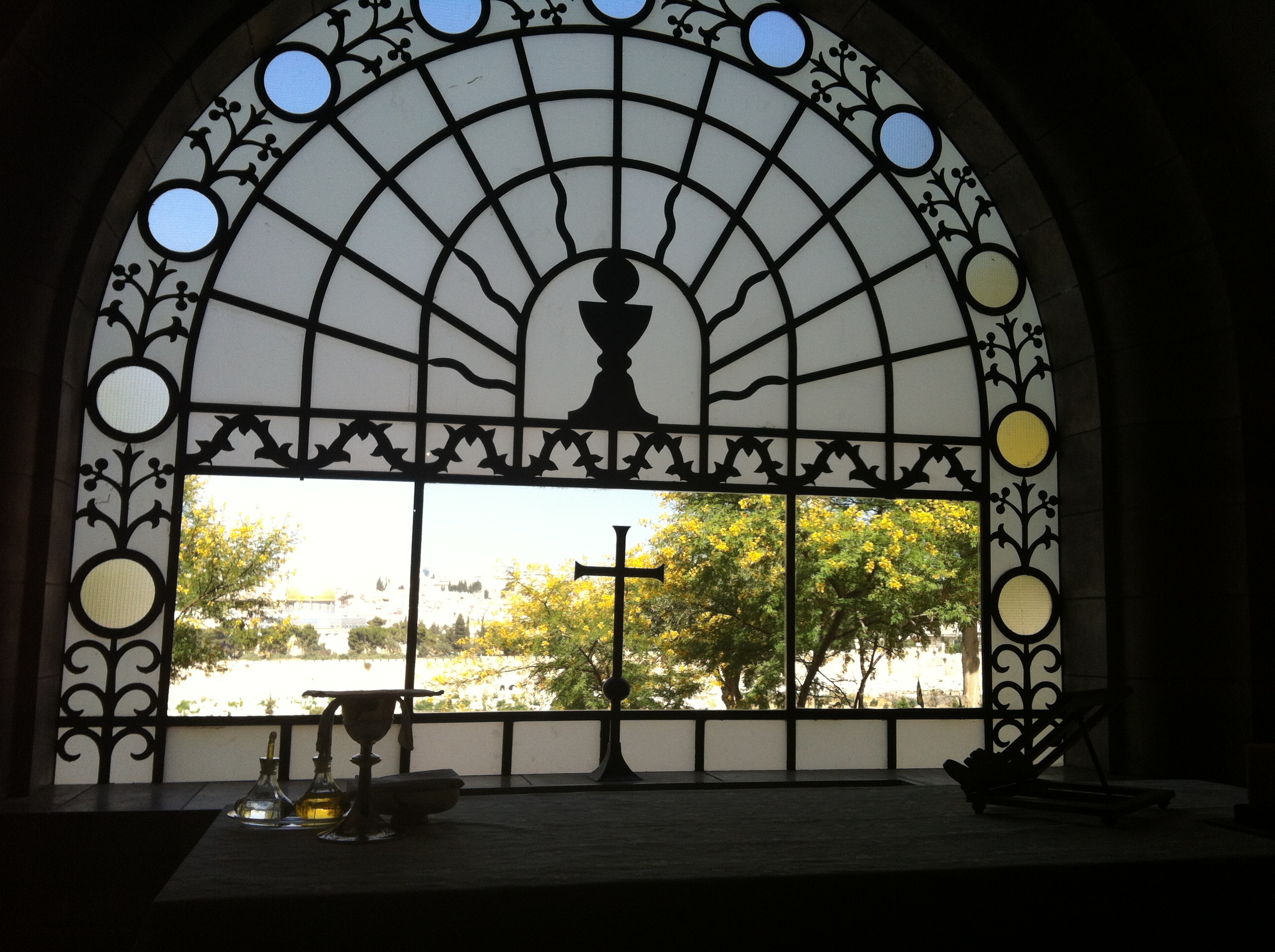 Past the olive trees of the commemoration of Gethsemane,