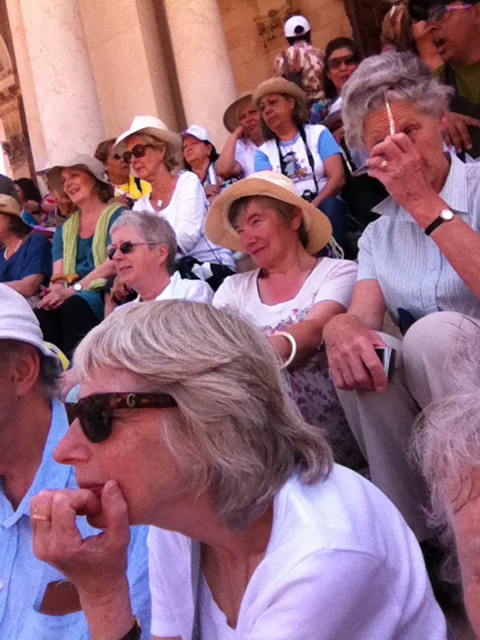 We sat on the crowded steps outside and listened to a Bible reading from Liz, then sang the hymn Be Still but strongly, to be heard above the hubbub of tourists like ourselves with so little time at so important a place.