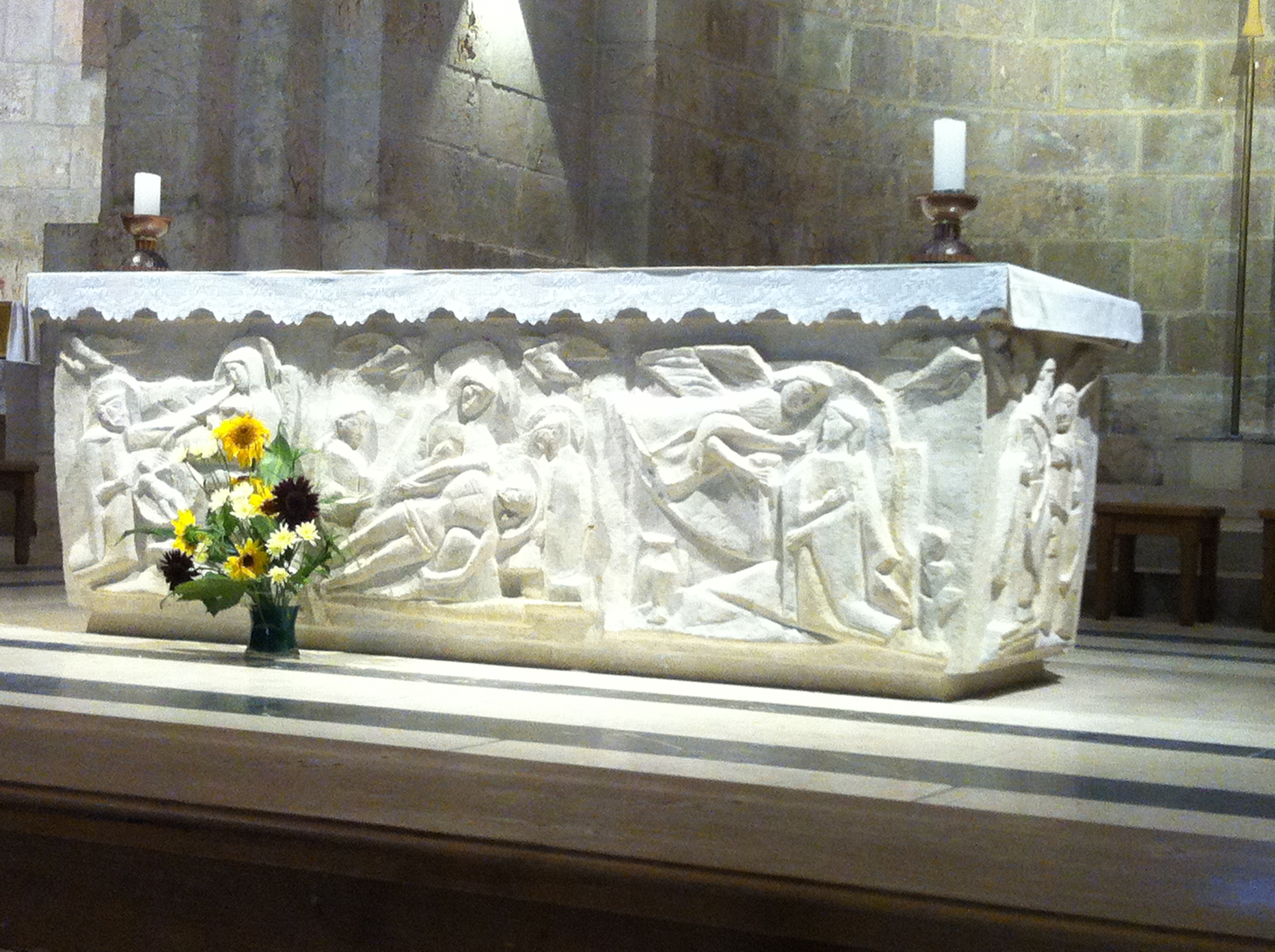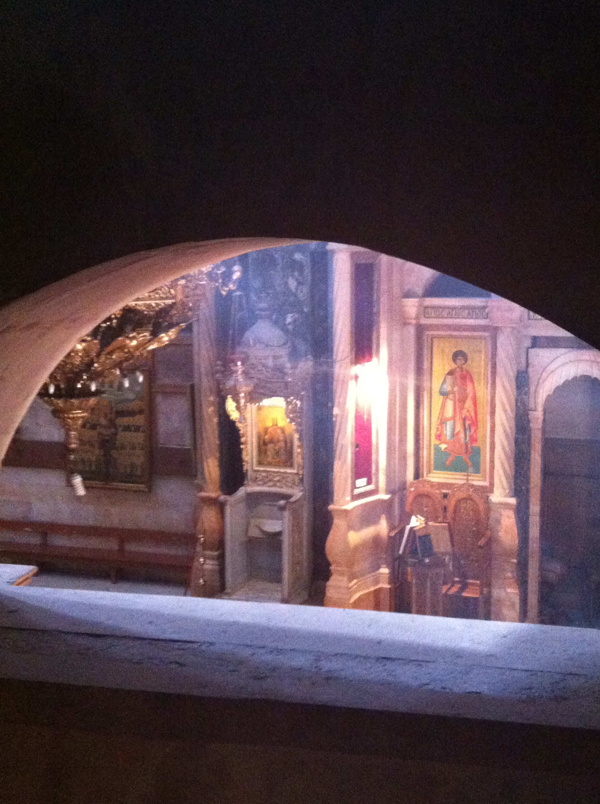 After a brief scare when we lost and found some fellow pilgrims we finally reached the Church of the Holy Sepulchre. Impossible to describe. This was a place of juxtapositions – between modest Byzantine columns and fortified Crusader columns, between garish brass lamps and charred stone hung with the accreted smell of incense, between solitary prayer and the 2hour queue of visitors for a brief glimpse of a recreated to