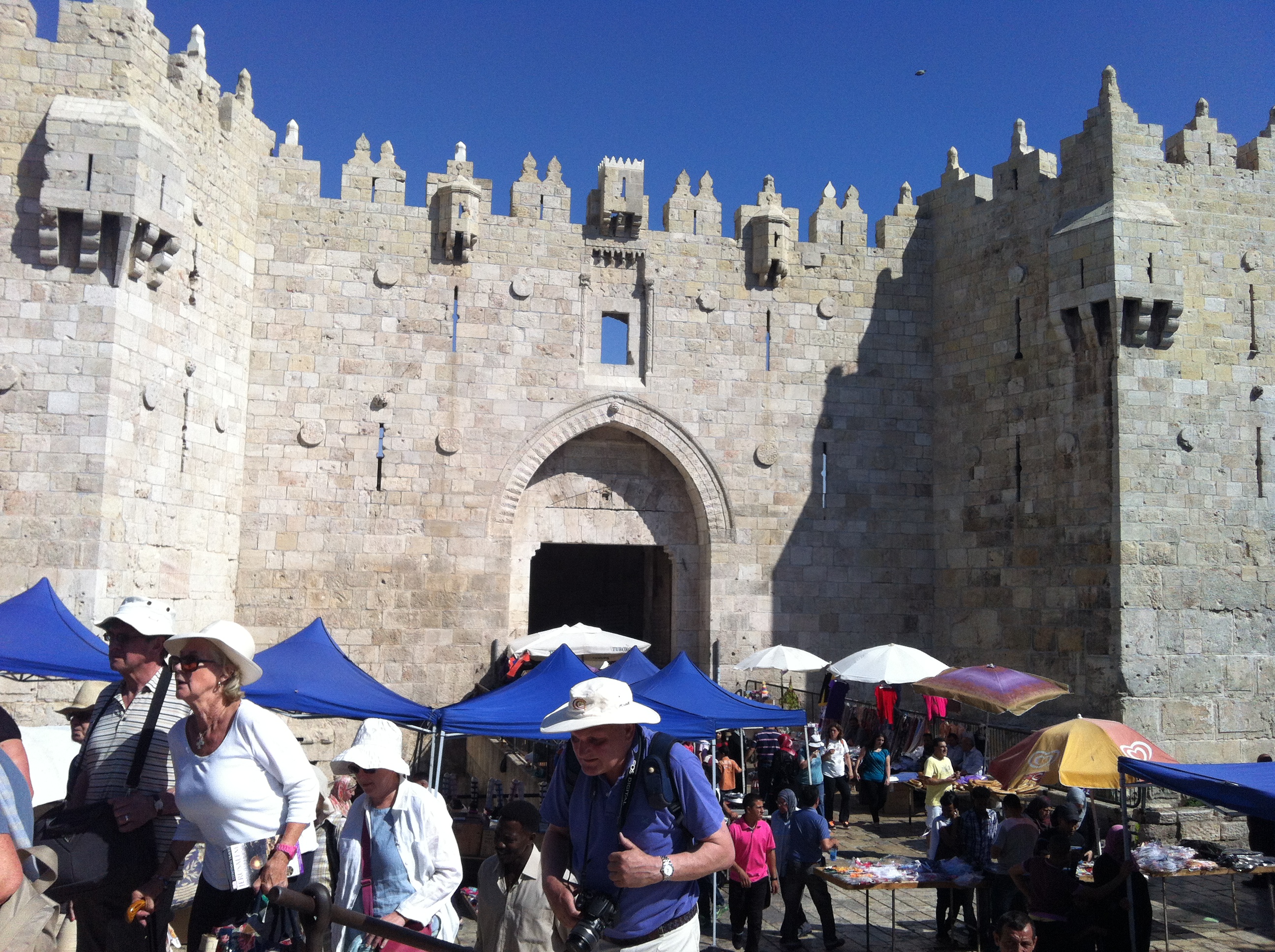 Exhausted pilgrims, we braved the sun again to return through the via Dolorosa to the Damascus Gate and, close by, the hotel.